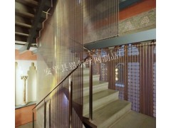 金屬網簾特點:金采用螺旋套編方式,能打褶,像窗簾一樣活動自如,因其具有金屬絲和金屬線條特有的柔韌性和光澤度,也直接造就了不同的現在金屬裝飾的藝術風格,掛簾顏色多變,并且具有耐高溫,不褪色,下垂度好,