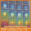 在激光全息防偽商標上印刷各種圖案和號碼.聚全息和印刷為一體,這種產品立體感強,色澤鮮艷。