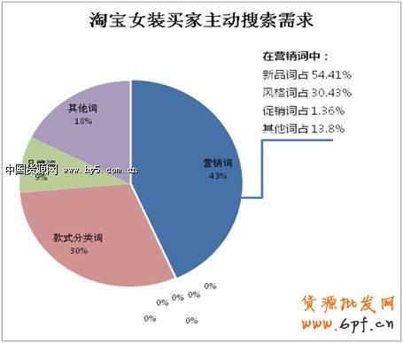 從整體淘寶女裝買家消費能力上看,100~200元的價格段為買家最容易促進成交的價格段,其次是50~100元。這個價格是一個粗的價格區間,從這個區間上大家可以知道,50~200元覆蓋的買家最多,被接受的程度也是最大的。不過,這只是一個區間段,并不是定價,可以作為定價的一個參考因素。當然,商品的定價具體是要和每個店鋪的定位、所售賣的類目以及銷售季節相結合起來的。另外,從淘寶女裝買家主動搜索的需求中體現,被關注最高是營銷詞(廣義上的營銷詞,就是廣告詞。引用到女裝上,第一種是買家自我需求的形容詞,還有一種是運營的推薦詞,這種一般是目前在流行上有一定共性的詞匯,如嗆口小辣椒、坑爹之類)、款式分類詞、品牌詞。女裝營銷詞中又以新品需求最為迫切,風格需求其次。