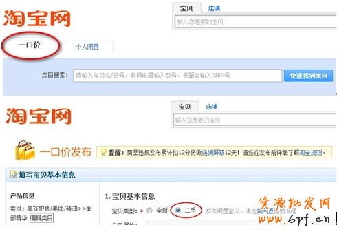 閑置商品和二手商品都會在淘寶二手交易平臺(域名為:http://2.taobao.com/)上進行展示,但展示頁面不同: