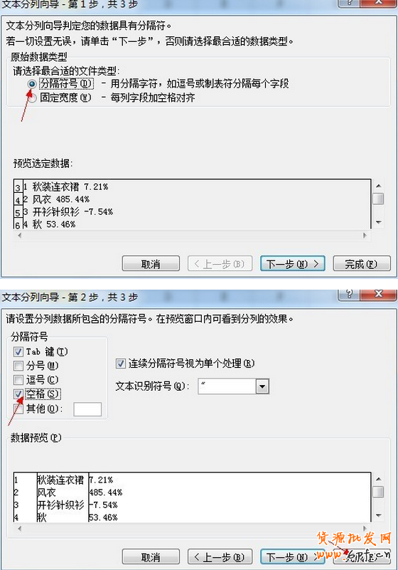 然后,就會看到結果,但是結果不是我們想要的格式。我們就在數據——分列把數據變換一下。