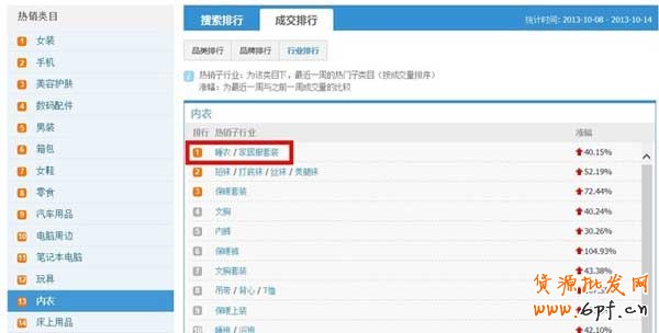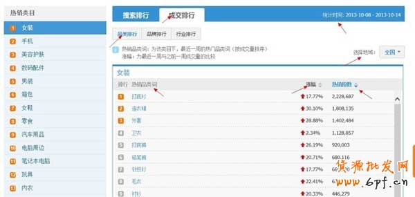 最后一個是行業排行。就是淘寶上面的類目排行。同樣要注意這個統計時間。