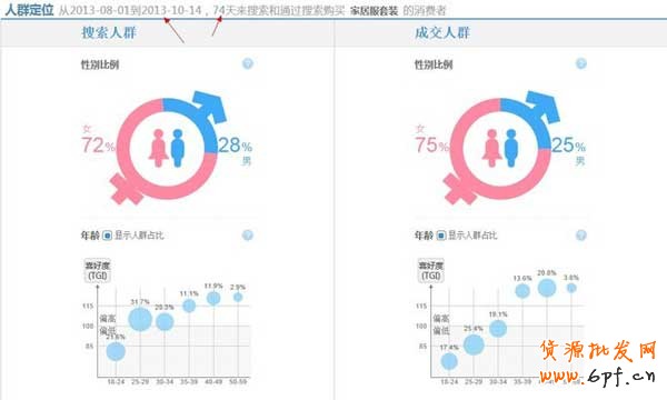 性別和年齡很重要,跟我們選擇產品丶做詳情頁都有很大的關系。特別服裝類的,賣萌裝跟成熟裝人群明顯不同,選擇優質人群可能做起來會容易很多??梢钥闯?,女性買家居多,35歲以上的,成交喜好度挺高(成交喜好度(TGI)=搜索詞成交的該人群占比全網成交的該人群占比100),占比也不小
