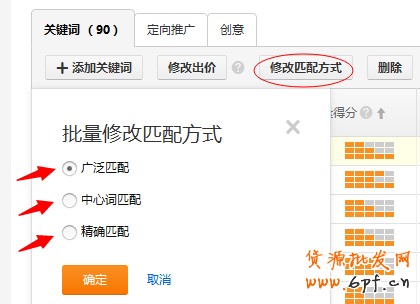 直通車的3大匹配方式,廣泛匹配/中心詞匹配/精確匹配。從流量質量上來講,廣泛匹配流量最不可控,因此質量最差,中心詞次之,精確匹配的流量最可控,因此流量最好。