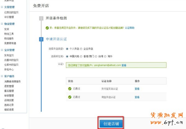 1)先通過開店條件檢測,具體的檢測條件如下:A、阿里巴巴工作人員無法創建淘寶店鋪