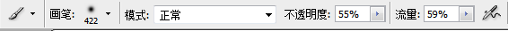 第五步:設置畫筆大小和不透明度、流量,最后將前景色設置為黑色,如下圖所示