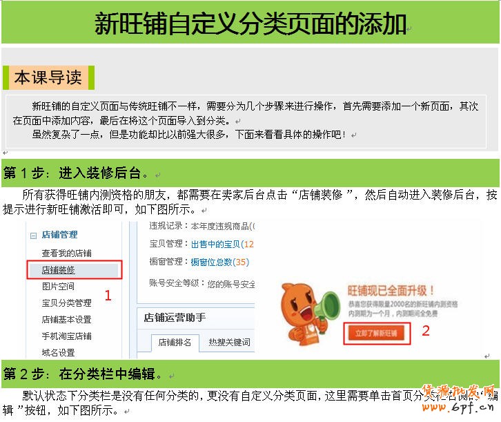 淘寶新旺鋪自定義分類頁面的添加