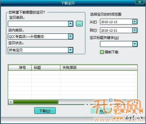 4.選擇寶貝所在的店內類目,時間范圍,寶貝狀態等,選擇好后,我們開始下載店鋪的寶貝。