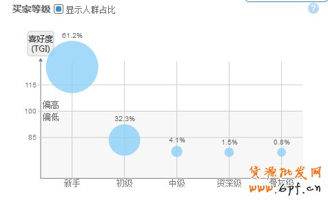 上面張圖充分暴露了老鳥的“逛”性。從喜好度(TGI)來看,新手(2心以下買家)的轉化率比較高,越往高級別的買家轉化率就越低。新手上淘寶大多數以購物為目的的。新手的特征,是對淘寶并不熟悉,他們可能也不會像高級買家那樣,貨比三家,因此,在詳情頁傳達性價比給這些買家就非常重要了。