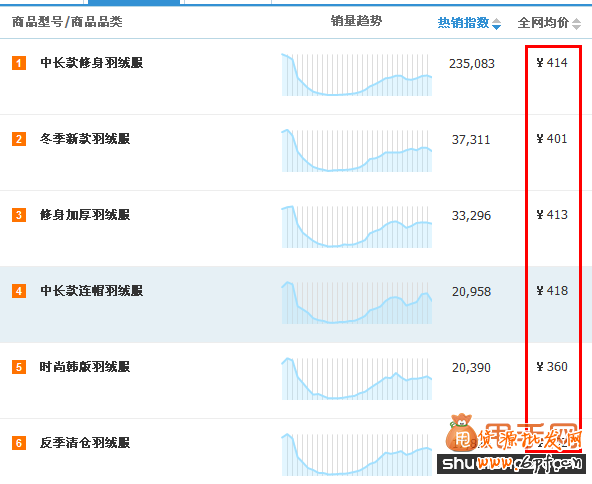 先看下圖,通過淘寶指數或者數據魔方找出全網產品均價