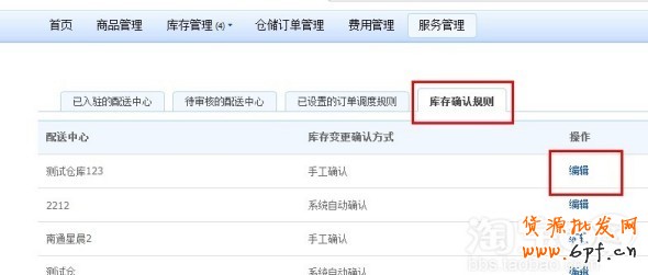 第二步:點擊“服務管理”->”庫存確認規(guī)則“(默認會顯示為手工確認)