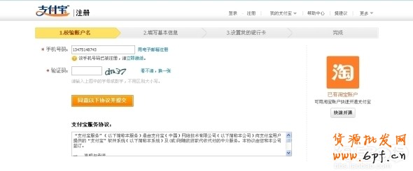 此貼我以手機號為例,填寫提交后,你的手機會收到六位數字的驗證碼,把驗證碼填寫后你的淘寶賬號到此就完全申請成功了。
