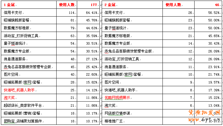 同時因為信譽等級越高,賣家基數越少,想對應的工具也較少,所以在工具采用比率上會比較高。