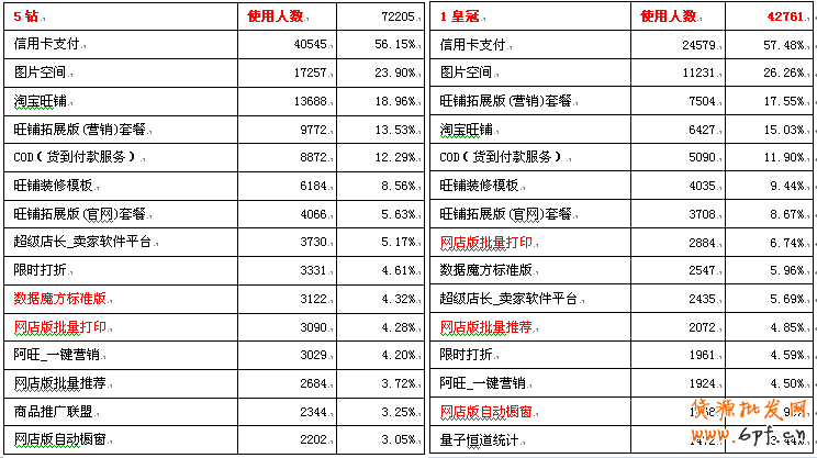不同層級的賣家需求的服務是不一樣的,下文中把每個層級最受歡迎的20個服務羅列了出來。當然,是否采用工具就看各位所處的行業和店鋪的實際情況。