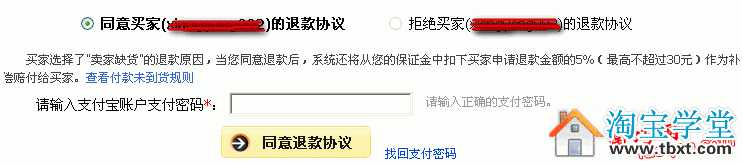 如果您點擊同意退款申請,與上面第一種情況:賣家缺貨,處理方式一致,同意退款協 議,確認退款成功,那么將在退款完成時從您的保證金中給予買家退款金額的5%作為賠償(最高不超過30元)