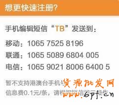 手機快速注冊需要收取信息費,0.1元每條,注冊淘寶賬戶免費。