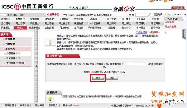 1、登錄工行網上銀行,點擊【繳費站】——【委托代扣】——【我的委托代扣】,點擊【終止】;