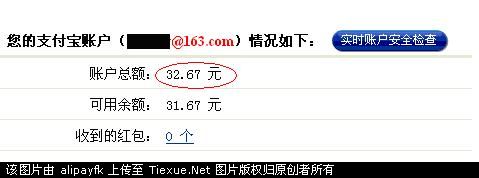我的支付寶帳戶可用余額為31.67