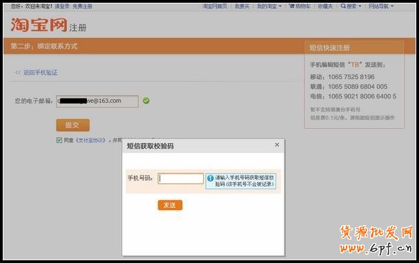 綁定郵箱作為聯系方式時,需要通過一個手機號來收取動態校驗碼,該手機號可以是任意手機號(包括已在淘寶注冊過的手機號)