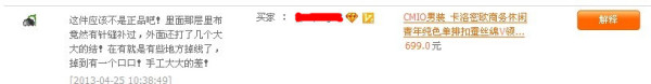 小妃很無奈,已經連續四天她第八次打電話給這位上帝了,她們的貨品都是檢查后再發出的,她每天真心實意的對待每個客戶,她覺得只要她是真心付出,進店的親們一定會被她的熱情打動的。今天他們店第一個差評生效了,她不明白到底是哪出了問題,她連續打電話了幾天電話想跟買家協商,這位上帝不是掛斷就是不說話,如果有任何質量問題可以退換,不喜歡可以退換,這客戶不退也不換,直接給差評了。她心灰意冷,這明顯是淘寶制度偏向賣家的不公平。