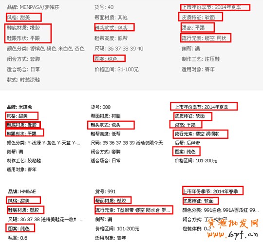 以下是隨機(jī)的三個(gè)相似產(chǎn)品屬性;