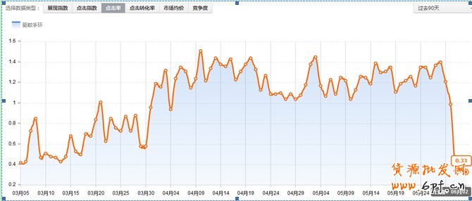 但是,如果萬能的淘寶在節(jié)假日增加了某個詞的流量渠道呢!以下是端午節(jié)時間增加的驅(qū)蚊手環(huán)這個詞,展現(xiàn)逆天了,翻了7倍,但是點擊量卻提升有限,這時候我們就找不到是哪個詞的原因,這時候?qū)崟r數(shù)據(jù)報表作用就很明顯了。