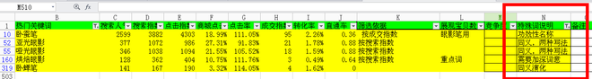 c.有一列是“特殊詞說明”,這列需要重視,一些錯誤演化詞,功效同意詞,自己不了解意思需要推敲的詞等,一定要記得備注下,比如“啞光 口紅”和“亞光 口紅”,眼影筆下面的“臥蠶筆”“臥蟬筆”等等,你會淘到意想不到讓你豁然開朗的一些好詞。