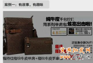 關(guān)聯(lián)搭配也需要有一定的門(mén)通,要是按照相關(guān)性關(guān)聯(lián)了,效果還不明顯,則可增加點(diǎn)”味頭,。除了要有折扣刺激、商品關(guān)聯(lián)度之外,增加點(diǎn)商品故事,無(wú)疑可以給商品插上翅膀,多點(diǎn)值得賣的元素。