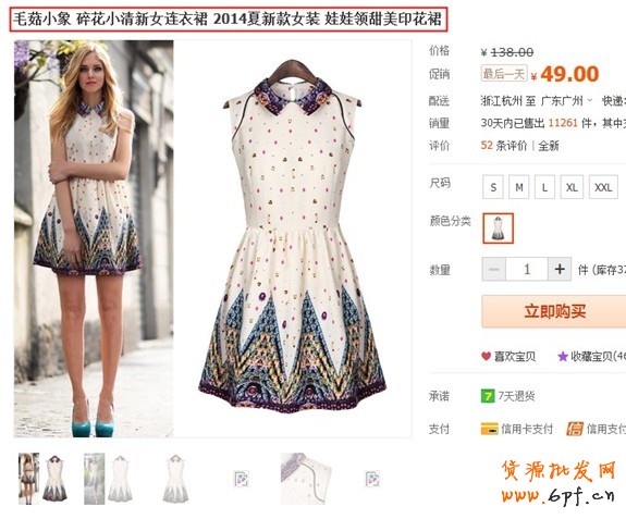 寶貝屬性如下,標題中提取了關鍵詞有碎花、女連衣裙、2014夏、娃娃領、印花裙。說白了就是中心詞、修飾詞一起修飾合并成一句話。