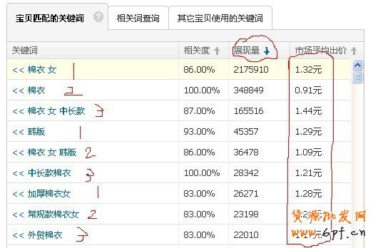 這里插一句測(cè)2-3款的詞怎么選:請(qǐng)看上面這張截圖。1丶把直通車推薦詞的寶貝匹配的關(guān)鍵詞都拖到excel里。2丶按展現(xiàn)量排序,再?gòu)纳系较聵?biāo)上1,2,3數(shù)字。3丶把標(biāo)1的放到1號(hào)寶貝里,把標(biāo)2的放到2號(hào)寶貝里,把標(biāo)3的放到3號(hào)寶貝里。