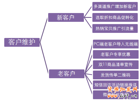 不管是面對雙11這種一年一度的大促,還是在無線端的發(fā)展,客戶做好維護首當(dāng)其沖,做得好的,可能是你無線流量的第一桶金,引導(dǎo)的不好,可能會失去一大批原有基礎(chǔ)的客戶群。想必這個大家都非常明白老客戶帶來的利益。而在雙十一規(guī)劃前,對于客戶維護,新老客戶同時維護,上表已經(jīng)給出了針對新老客戶的不同推廣方法,大家可以借鑒。