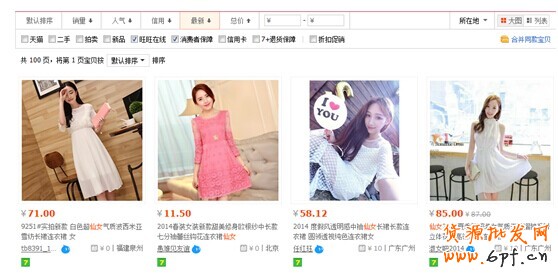 從上圖我們可以看出,頁面上默認排序的寶貝,不是銷量,不是人氣,也不是默認的綜合排序。而是一些參加了消保、旺旺在線,以及標題里出現了“仙女”字樣關鍵詞的寶貝。由此我們可以知道,想要讓自己的寶貝有優先的展示權,就要在以上的幾個方面做好,就有機會排在搜索列表的前面。