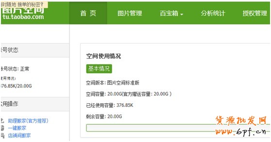 進入淘寶圖片空間的方法有很多,可以點擊旺旺面板單擊“圖片空間”,也可以直接進入,這里給大家介紹個最簡單的,登錄淘寶“賣家中心”→點擊店鋪管理的“圖片空間”,如下圖:(注意:此為新版的圖片空間)
