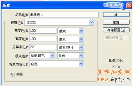 第一步,打開PHOTOSHOP,建店標,設置100*100像素。