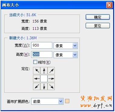 2、設置好寬度,注意單位是選擇像素!畫布的擴展顏色為前景!如下圖: