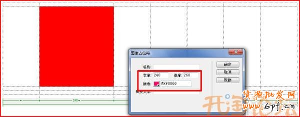 在【寬度】、【高度】中輸入相應的尺寸大小,接著在【顏色】項目中添加上顏色,這個步驟的主要作用是為了區分各個單元格的圖像占位符,如此一個圖像占位符就做成了。