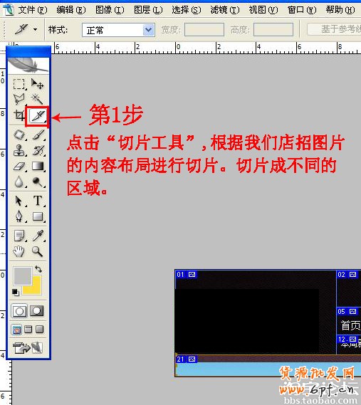 第三階段:利用PS的切片工具,對店招圖片進行切片;編輯切片選項,插入相對應的頁面鏈接地址。