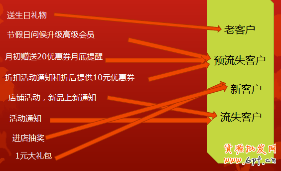 針對預流失客戶:在上面根據店鋪客單價進行客戶分層可分為三種,一種購買金額高的,升級為高級會員,后期享受與老客戶同等待遇,一種購買總金額一般的,提供每月月初贈送20元優惠券。一種購買金額低的,僅僅提供打折的優惠。
