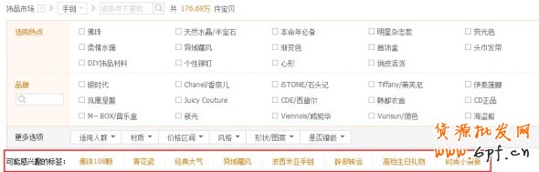 從淘寶網首頁或者導購市場,點擊相關的類目,在類目導航區域可以看到寶貝標簽