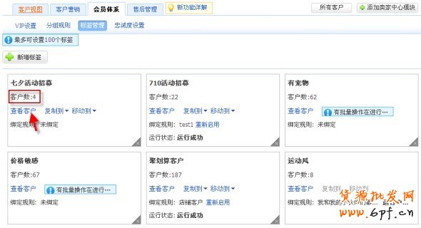 第二步,打標(biāo)簽。通過客服旺旺,將指定的老客戶打上“老帶新3位以上”的標(biāo)簽。此外針對老客戶,還可以在會員列表中選擇該標(biāo)簽。