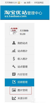1、先從自己的小站進入站點管理,然后找到圖片空間。