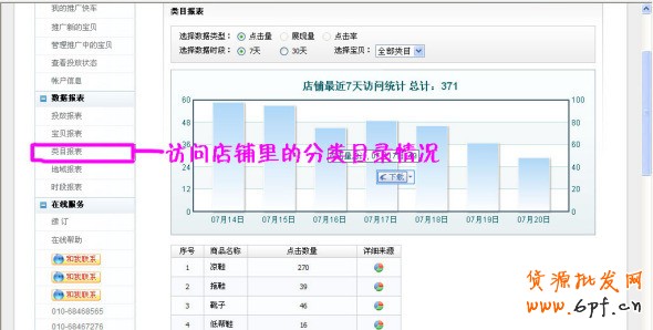 統計最近7天和30天店鋪分類目錄的點擊數量及詳細IP來源。