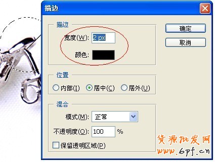 在這里,我們設(shè)置描邊線的寬度:2px;顏色:黑色。然后點(diǎn)擊確定。Ctrl + D取消選區(qū),圖片描邊成功,如下圖: