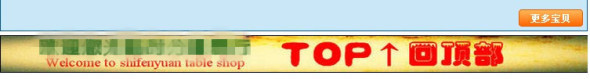 接下來(lái)再簡(jiǎn)單的談一下添加“頁(yè)尾”和“宣傳促銷”模塊,頁(yè)尾主要依靠PS一張長(zhǎng)寬合適的圖片來(lái)實(shí)現(xiàn),可以在圖片上加上“歡迎光臨本店”、“TOP回到頂部”等字樣,把圖片添加到自定義內(nèi)容區(qū),再為圖片和文字加上超鏈接,保存發(fā)布就好啦,這樣一個(gè)簡(jiǎn)單的頁(yè)尾就做出來(lái)了,如圖所示