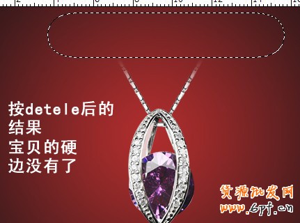 這樣寶貝的鏈子有點硬,下面使用羽化處理下就可以了!方法是選中上部,使用