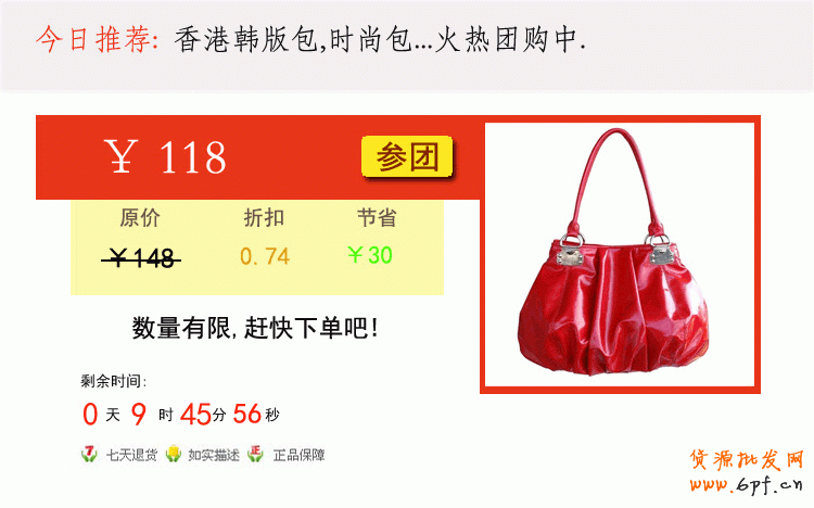 現在把你店鋪要參加淘寶限時折扣的寶貝主圖放進來,可以用QQ截屏再ctrl+v就放進來了,注意截屏的時候,要截成正方形哦,因為這個方框基本是正方形的,所以為了方便美觀,一定要仔細截好屏.然后用工具條的那個移動工具把我們的寶貝圖片放在正方形框內,可以用ctrl+t快捷鍵來調整大小記得按回車,調好了,看下圖,我在在百度里找了一個包包圖片入進來了,你們看.
