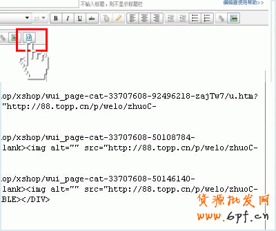 第七步:將右側(cè)模塊(促銷代碼)的代碼復(fù)制粘貼到編輯欄里,再次點擊 “編輯HTML源碼” 按鈕。