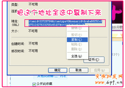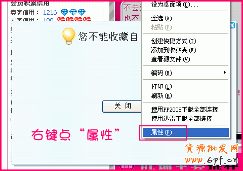 第二:準備收藏按鈕的連接。打開自己的店鋪,點“收藏本點鋪”,出現收藏設置頁面。在頁面空白處,點鼠標右鍵,點“屬性”,然后把屬性里的地址復制下來保存。
