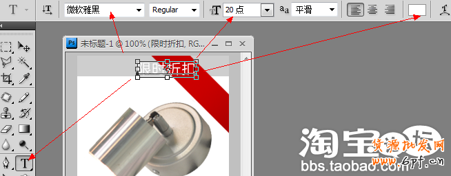 g:在如圖位置輸入文字:限時(shí)折扣,參數(shù)如圖所示。