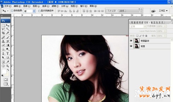 1.打開素材——林美女,復制背景圖層,選中背景副本,濾鏡——抽出。